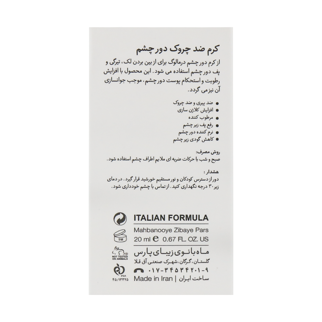 - به عنوان یک مرطوب کننده عمقی، از خشکی و کشیدگی پوست حساس اطراف چشم جلوگیری نموده و نرمی و لطافت آن را حفظ مینماید.