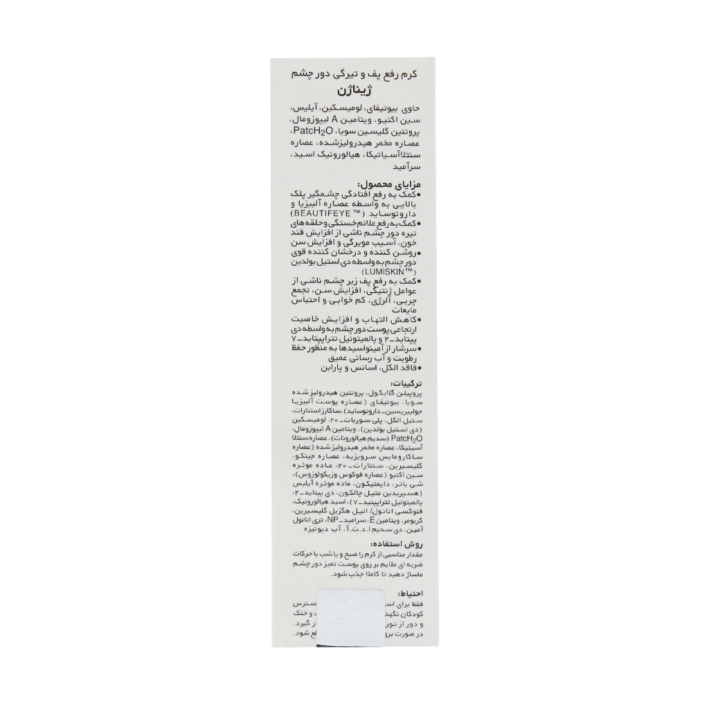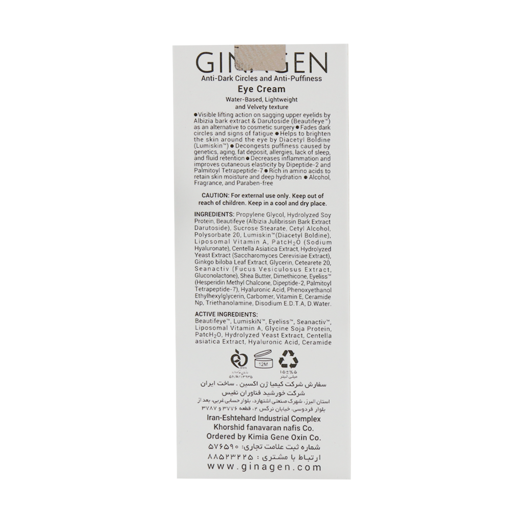 لیست ترکیبات کرم ضد تیرگی و پف دور چشم ژیناژن